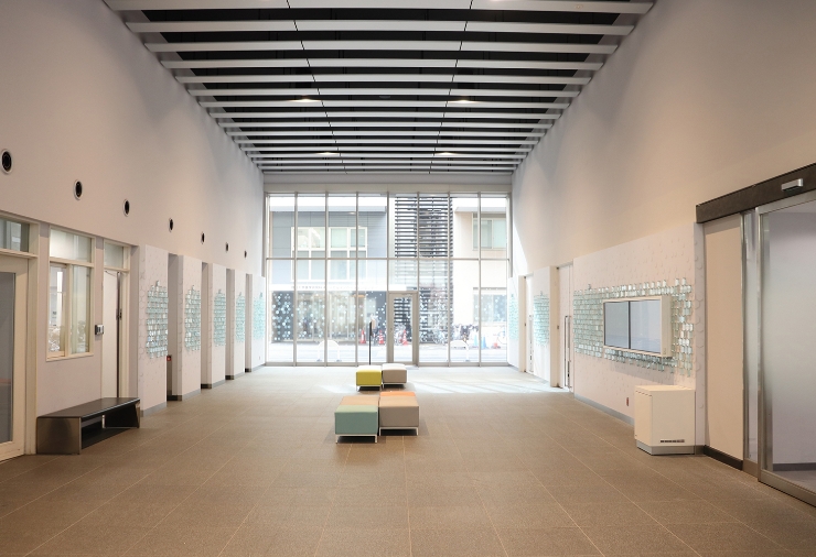 iPS細胞研究所のエントランスホールには、基金へご支援いただいた方のお名前を記載した寄附者銘板が設置されています。銘板を含むホールの改修では、研究所の活動が寄附者に支えられていることが感じられる開放的な空間となるよう、研究者や研究支援スタッフと協力し、10年後にも残るホールを整備することができました。寄附者など様々な訪問者にご利用いただいている姿を見ると嬉しい気持ちになります。