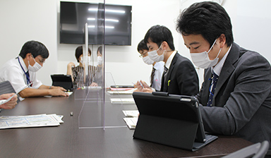 掛内定例ミーティングにより業務の進捗状況の確認と情報共有